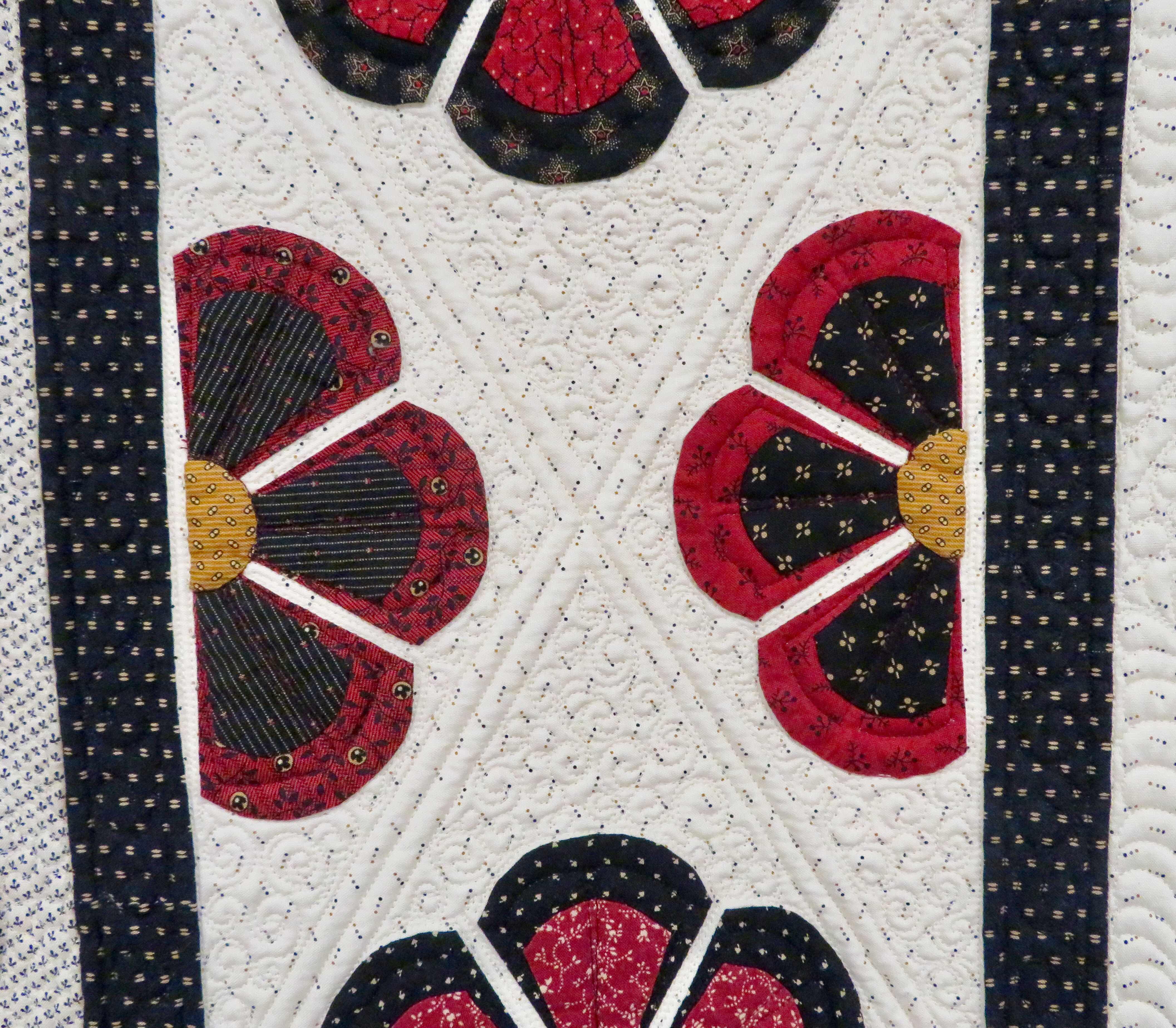 I love the way Helen created diamond shapes around these flowers with her superb quilting.